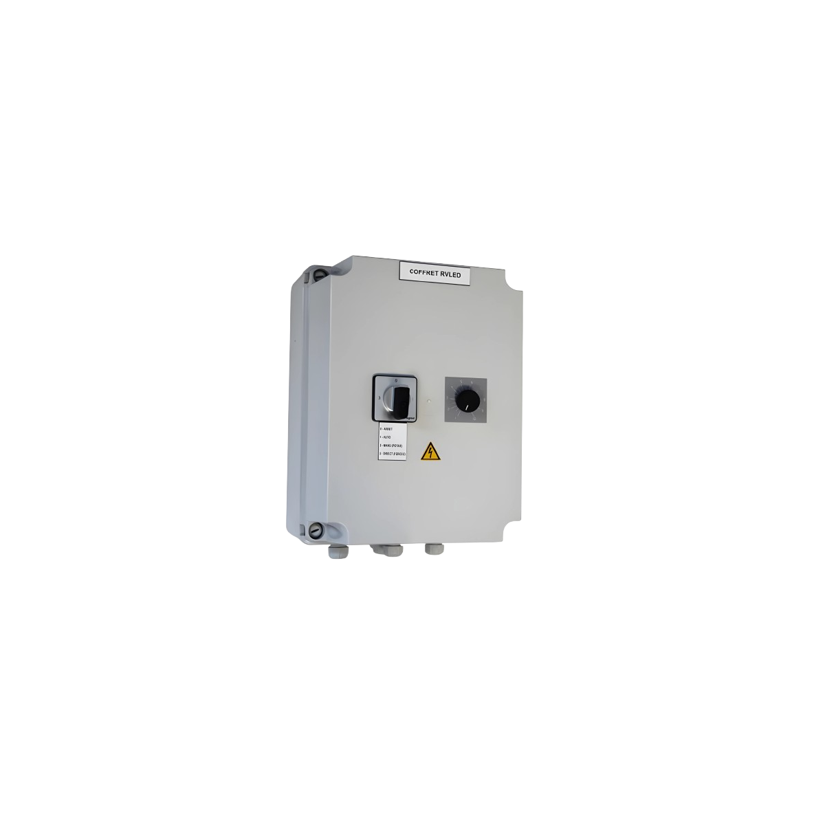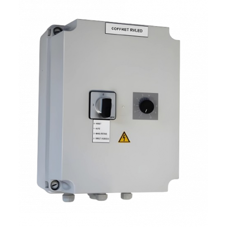Coffret avec 1 variateur RVLED avec gradateur, commande AUTO / 0 / MANU en façade